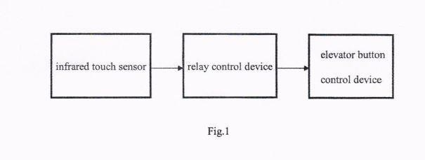 The present invention provides a contactless elevator control system. The system comprises an infrared touch sensor, a relay control device, and an elevator button control device, wherein: the infrared touch sensor emits an array of multiple infrared beams, receives reflected infrared beams, calculates a vertical and lateral displacement, determines corresponding coordinate information, calculates a corresponding elevator button, and sends a corresponding control; the relay control device drives the corresponding relay contacts to close. The solution uses the touch sensor to achieve contactless control of elevator buttons, reducing the of spreading bacteria and viruses when touching the elevator buttons.