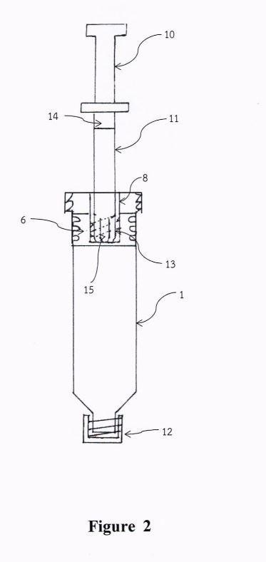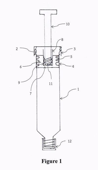 This stopper features a thread that meshes with the inner ridge ofthe tube for a secure seal In addition, the tripleJock stopper has a hole, located at the upper middle area. The hole on the triple-lock stopper is designed to fit a hollow plastic cylinder. For the inside area ofthe hollow cylinder, the top halfhas a smooth surfhce and the bouomhalfhas a helical ridge surface. Through the unique design ofthe helical ridge surface, the tripleJock stopper can be connected