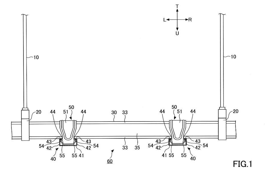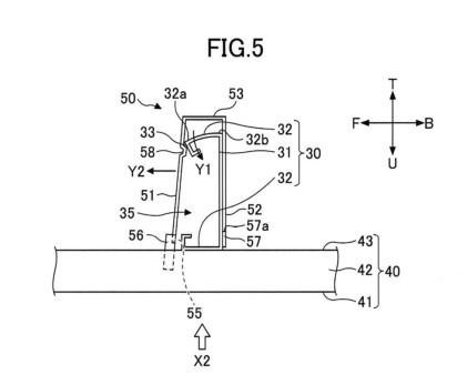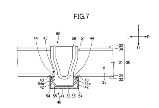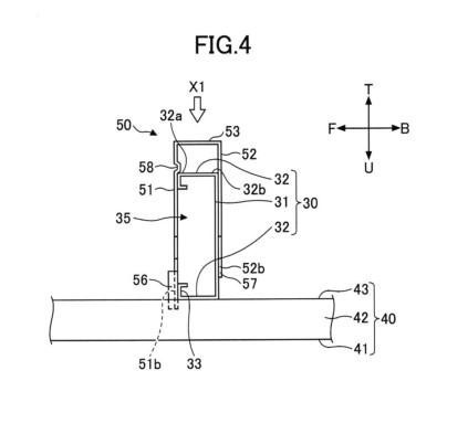 the first hanging piece 51, only the first engagement projection 54 comprising an engagement cavity 55 that is concave downward at the projecting base of the first engagement projection