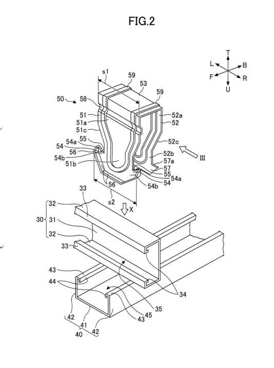 piece 53 and comprises therebelow a second engagement projection 57 that is locked to