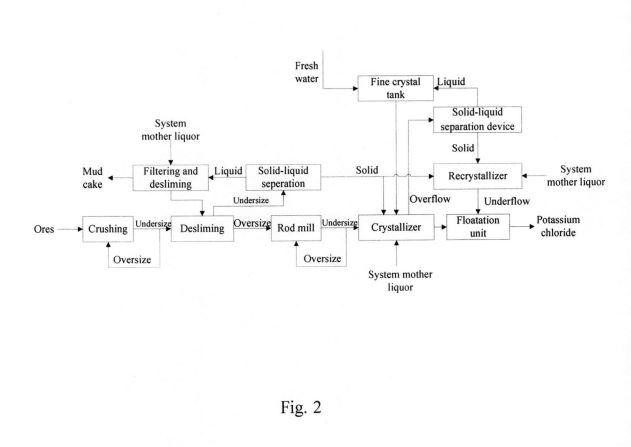 The disclosure provides a process for obtaining potassium chloride, comprising: crushing carnallite ores and desliming the ores with a saturated solution of magnesium 5 chloride; and crystallizing in a crystallizer after a deslimed ore, water and system mother liquor are mixed and sent into the crystallizer. The process of the disclosure can timely remove muds of the ores sent into the crystallization and floatation steps by desliming, avoid the accumulation of mud particles in the crystallization and floatation steps, avoid the adverse impact of mud particles on the crystallization and floatation steps, and improve the l0 whiteness of potassium chloride products. At the same time, the system mother liquor is used for desliming the ores, which can reduce the water consumption for desliming, reduce the amount of tail liquor treatment, prevent the ores from dissolution in the desliming step, and make the dissolution completed at one time in the crystallizer.